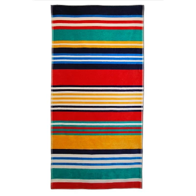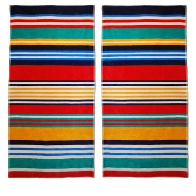 Lounge in style with the Boulter Bold Stripe Summer Cotton Oversized Beach Towel. Crafted from Cotton, this generously sized beach towel set can survive any beach, lake, or poolside adventure while still being plush enough to relax and sunbathe. On one side, a soft velour repels water and sand and on the reverse, an absorbent terry keeps you cozy and warm. The festive multicolor stripe pattern is soft to the touch, lightweight, and folds compactly to take up minimum space in any beach bag or suitcase. Add some flair to your beach bag with this machine washable beach towel.