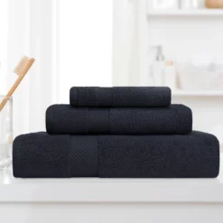 Refresh your shower space with the Latham 3-Piece Zero-Twist Towel Set. Crafted with premium Cotton, the two-ply construction makes these towels just as long-lasting and durable as they are stylish. This charming set includes 1 bath towel, 1 Hand towel, 1 washcloth in an assortment of solid colors. Featuring crisp, hemmed edges and a detailed chevron border, this gorgeous set is sure to elevate the beauty of your bathroom and give you a look you’ll love.