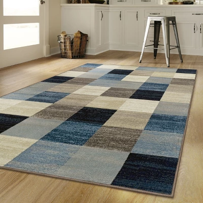 Accent your floors with the crisp, modern look of the Isai Area Rug. Well-crafted from exceptional, 100% Polypropylene fibers with an ultra-soft 0.31 pile height and complete with a strong jute backing, this striking rug handles the busiest rooms of your home while remaining cozy and long-lasting. Available in shades of blue rivulet and decorated with a geometric patchwork pattern, Isai will become an instant focal point among your decor. Update the look of living rooms, offices, dining rooms, and more with this beautiful rug.