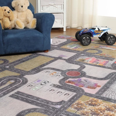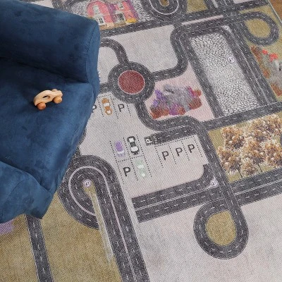 Create a welcoming playroom with the Country Road Kids Playroom Nursery Washable Indoor Area Rug by Blue Nile Mills. Featuring a road pattern, this area rug provides an interactive approach to playtime. The polyester material is incredibly durable while being a soft and comfortable foundation for your floors. This beautiful area rug is available in an assortment of popular rectangular sizes to perfectly fit your kid’s room, playroom, nursery, daycare, or school room. This vibrant and colorful rug is machine washable for easy clean up from pets or children. For your convenience, this rug can be rolled or folded for easy storage. Room Types: Entryway, Kids Room, Baby Room, Mudroom, Any Room, Basement, Bedroom, Dining Room, Foyer, Hallway, Home Office/Study, Kitchen, Living Room, Lounge