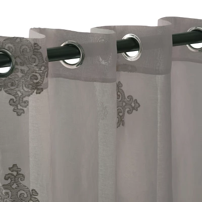 Update your windows with the Royalwood Embroidered Sheer Curtain Set. These lovely panels feature gorgeous needlework and a symmetrically embroidered damask pattern that creates a whimsical design. Crafted from 100% Polyester with a polished, stainless grommet header, this panel duo is both durable and modern in design. Our semi-sheer curtains mingle well with any decor style and fit in nicely with either bold or soft decor styles. These exquisite curtains enhance the look and feel of your home and boast a style you’ll enjoy for years.