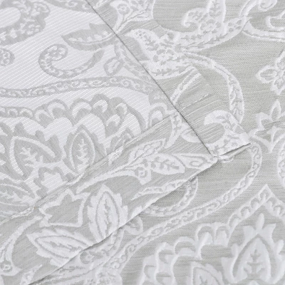 Add a regal accent to your windows with the Burley Jacquard Curtain Set. This beautiful panel pair displays a crisp, white floral damask pattern woven into a soothing backdrop in your choice of light gray, linen, or red. The subtle sheen of this whimsical set will make them an instant highlight among your decor. Crafted from quality, 100% Polyester and complete with a polished, stainless grommet header, this set is modern in design and easy to install; just hang and slide! These panels provide privacy in your home while adding a lovely update to your interiors.