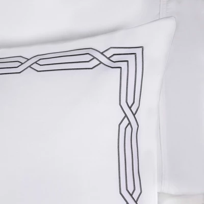 Create an effortlessly elegant and cozy resting space in any bedroom with the Cotton 1200 Thread Count Embroidered Geometric Scroll Duvet Cover Set by Blue Nile Mills. This duvet cover set is crafted from luxuriously soft, durable, and breathable Cotton fibers. Showcasing a gorgeous geometric scroll embroidery, this duvet set pairs with Classic, Modern, or Contemporary decor styles. This duvet cover fastens with clear, hidden buttons and four corner ties to make sure your duvet insert or comforter doesn’t shift or bunch up. Available in a solid white color with contrasting embroidery colors, including; charcoal, navy blue, taupe, or white, easily update your bedroom style with this set. For a coordinated look, the included pillow shams display a matching embroidery for an elegant finish to your bed.