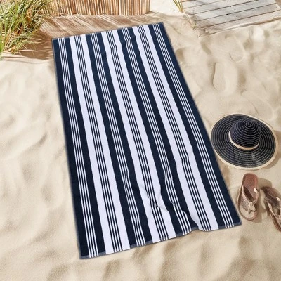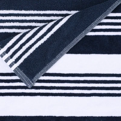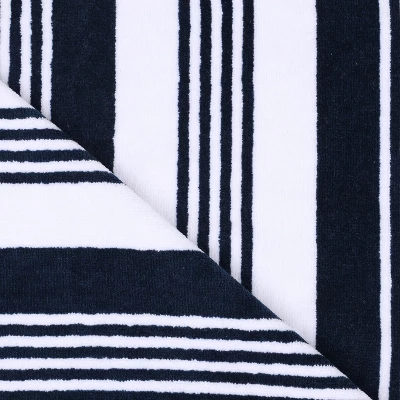 Enjoy that luxury resort feel on the beach or by the pool with the Maui Striped Beach Towel Set by Blue Nile Mills. This lovely towel features soft velour that repels water and sand with a unique reversible design. Each towel is oversized to keep you warm and dry after swimming or sunbathing. Perfect for adults and kids alike, these beautiful towels are colorfast and machine washable.