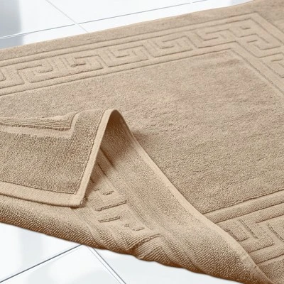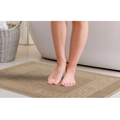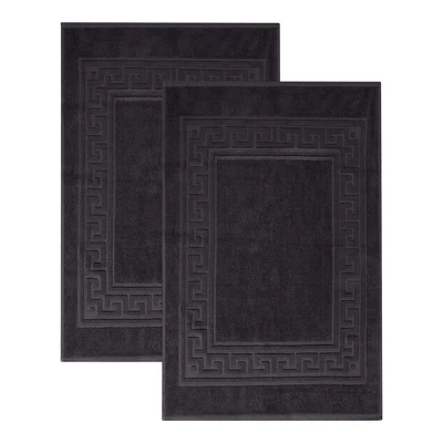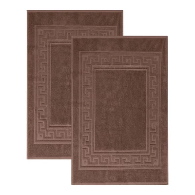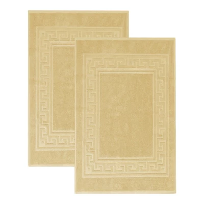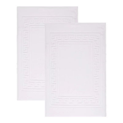 Elevate the look of your bathroom or powder room with the Soares 2-Piece Bath Mat Set. The highly absorbent Cotton material brings ultra-soft comfort keeping your feet toasty warm and your floors clean. This lovely pair showcases a beautiful meander border that will bring classic style and elegance to your bathroom dcor. Perfect for everyday use, this machine washable set features an ultra-plush underfoot so you can enjoy cloud-like comfort when you step out of your shower or bath.