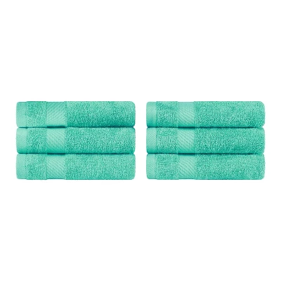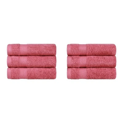 Update your bathroom hand towels in style with the Lincoln Modern Solid Classic Premium Luxury Cotton 6 Piece Hand Towel Set by Blue Nile Mills. This luxurious hand towel set will tie together any bathroom decor style including; Modern, Casual, Classic, or Traditional. The solid design with a classic dobby border will seamlessly elevate the mood of your space. The length and strength of premium Cotton makes these towels naturally strong and soft. For comfort and durability, each towel provides versatile absorption. These delightful hand towels are available in a variety of vibrant colors to match your bathroom decor.