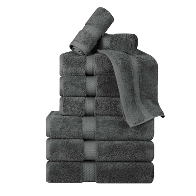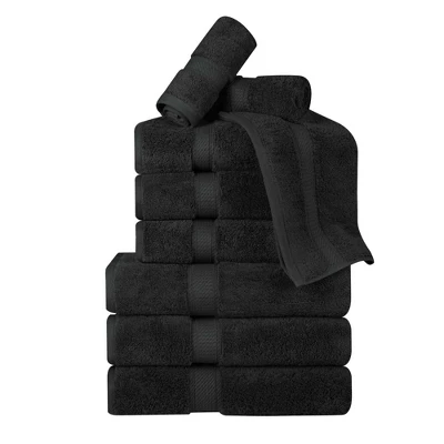 Indulge in a wondrous hotel-quality bathroom experience with the Premium Cotton 9 Piece Bathroom Towel Set by Blue Nile Mills. Our most luxurious cotton bathing essentials have a heavyweight thickness to keep you warm and get you dry quickly. Each piece in this plush and fluffy set sops up moisture effortlessly, keeping you cozy as soon as you step out of the shower or bath. These luxurious towels come in a variety of solid colors, including; black, chocolate, charcoal, cream, forest green, latte, light blue, navy blue, plum, purple, red, rust, seafoam, stone, teal, toast, tea rose, white, coral, denim blue, silver, and turquoise to coordinate with any bathroom decor style. Pamper yourself, or reserve this set for guests, while giving a modern flourish to any master bath, powder room, or guest bath.