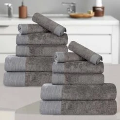 - INCLUDES: Four (4) Face Towels/ Washcloths, Four (4) Hand Towels, Four (4) Bath Towels
