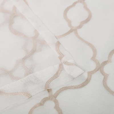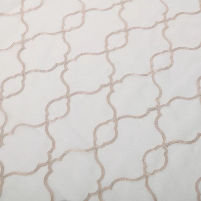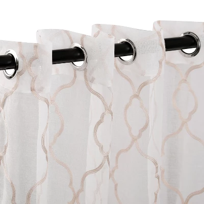 Give your windows the look of luxury with the Bellomy Classic Geometric Lattice Sheer Curtains by Blue Nile Mills. Crafted from 100% Polyester with rod pockets or stainless grommet header (depending on size), this panel duo is durable and modern in design. Our sheer curtains provide privacy while still allowing the sun to peek into your space, giving your home a cozy feel. These curtain panels feature a soothing geometric lattice design that will effortlessly accent your existing modern home decor.
