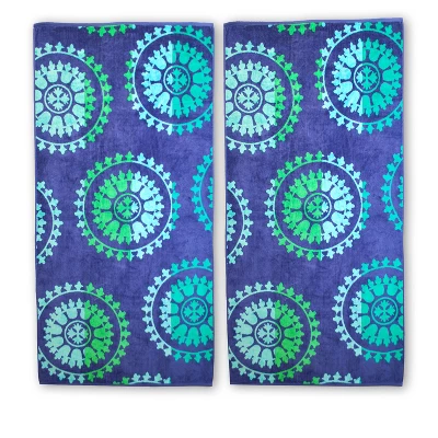 A forever classic, the Talei Summer Geometric Pinwheels Cotton Oversized Beach Towel is just what you need to relax and sunbathe in style. Crafted from Cotton, this extra-large beach towel is quick-drying to help you dry off after a dip in the ocean, lake, or pool. On one side, a soft velour repels water and sand and on the reverse, an absorbent terry keeps you cozy and warm. This generously-sized towel folds compactly to take up minimum space in any beach bag or suitcase. The charming wheel pattern in soothing shades of blue is perfect for both kids and adults alike.