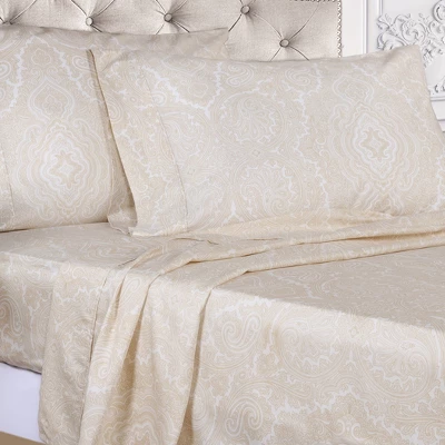 Complete the serenity of your bedroom decor with the Veta Italian Paisley Cotton Blend Deep Pocket Bed Sheet Set by Haus & Home. Crafted from a premium cotton rich blend, this sheet set is durable and comfortable. This bohemian sheet set is available in a variety of stylish color options to match your unique bedroom style.