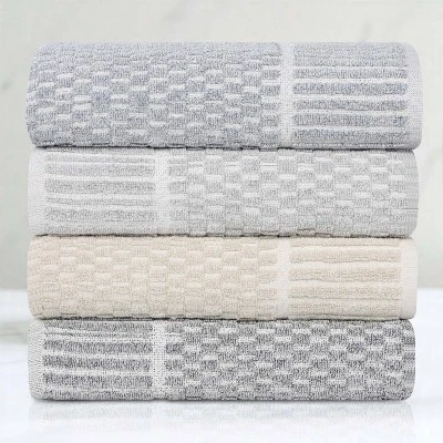 Transform your bathroom into an oasis of tranquility with the Viscose Cotton Blend Medium Weight Soft Textured Checkered Ribbed Border 12 Piece Towel Set by Blue Nile Mills, designed to provide an unparalleled sensory experience. The delicate two-toned checkered pattern and elegant ribbed border create a timeless aesthetic that complements any decor. Meticulously crafted from a blend of the finest cotton and viscose, these towels are a testament to enduring quality and unparalleled comfort. Embrace the art of self-care and indulge in the simple pleasure of a truly luxurious towel.
